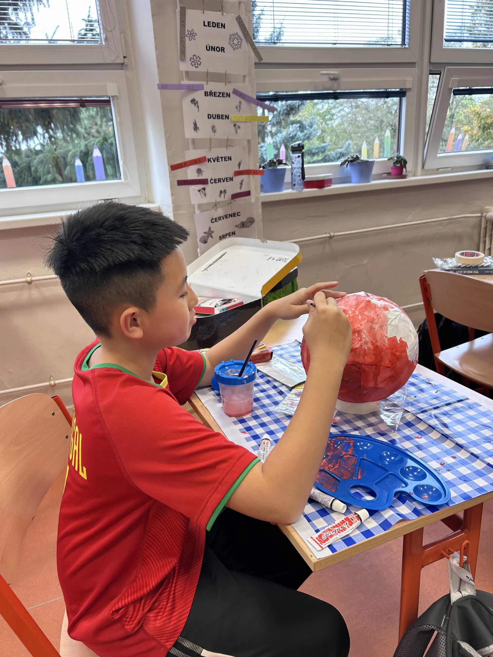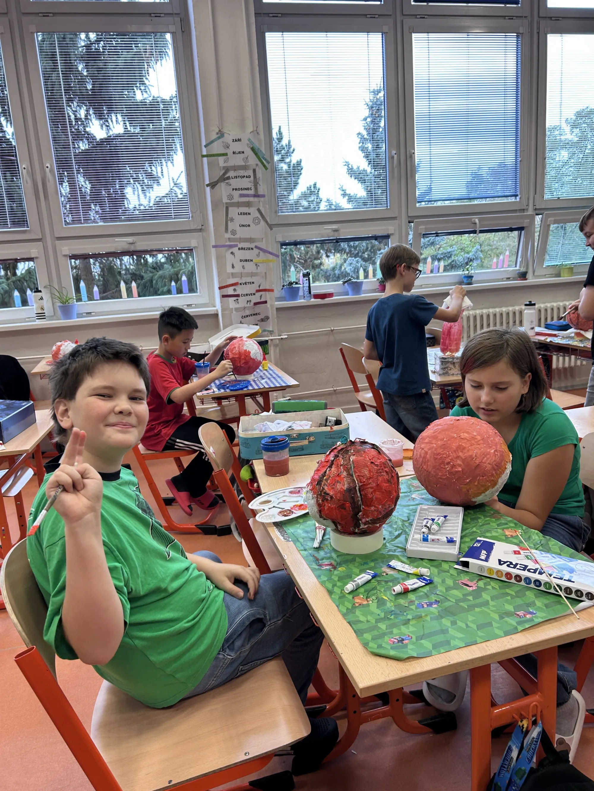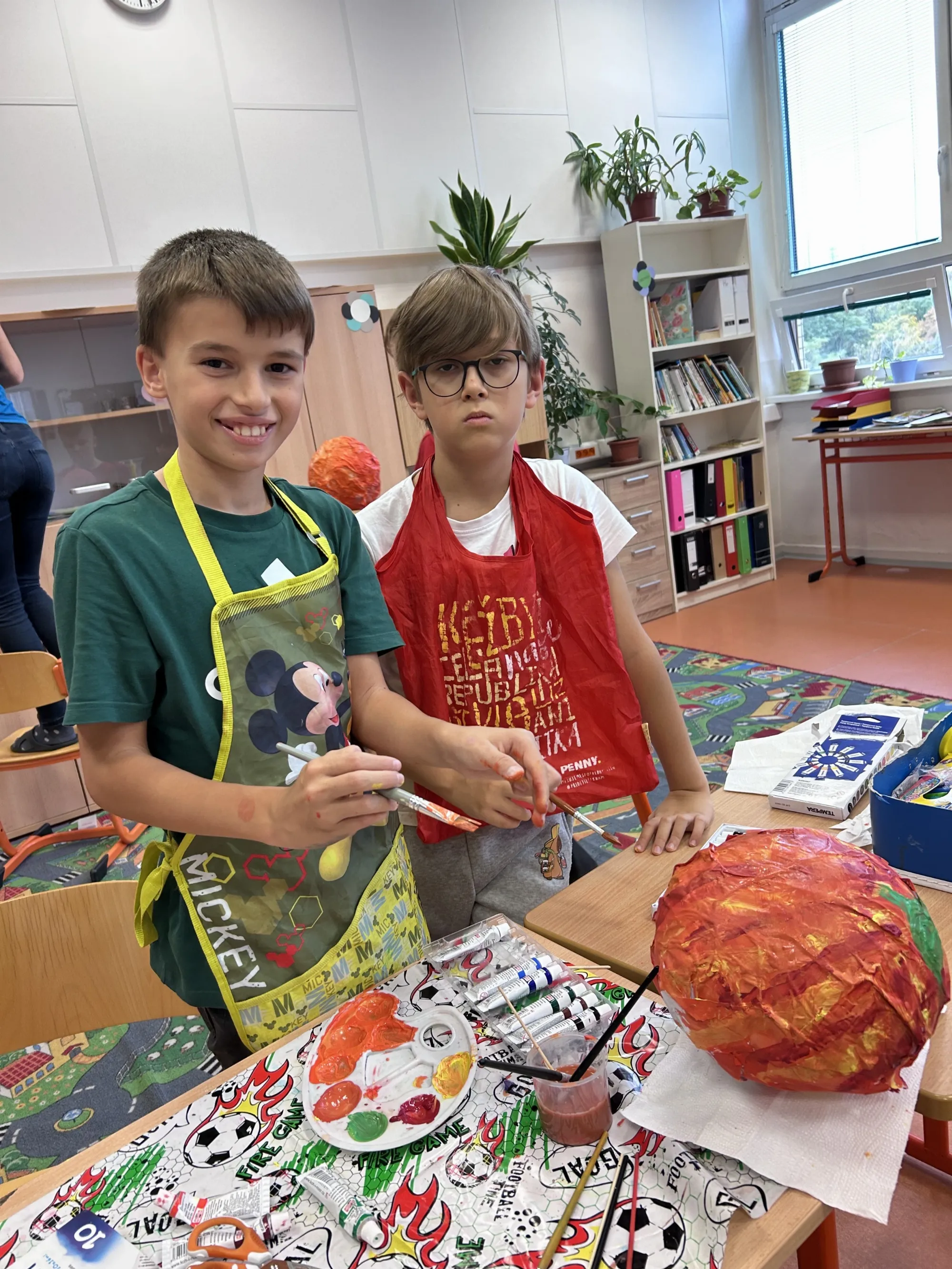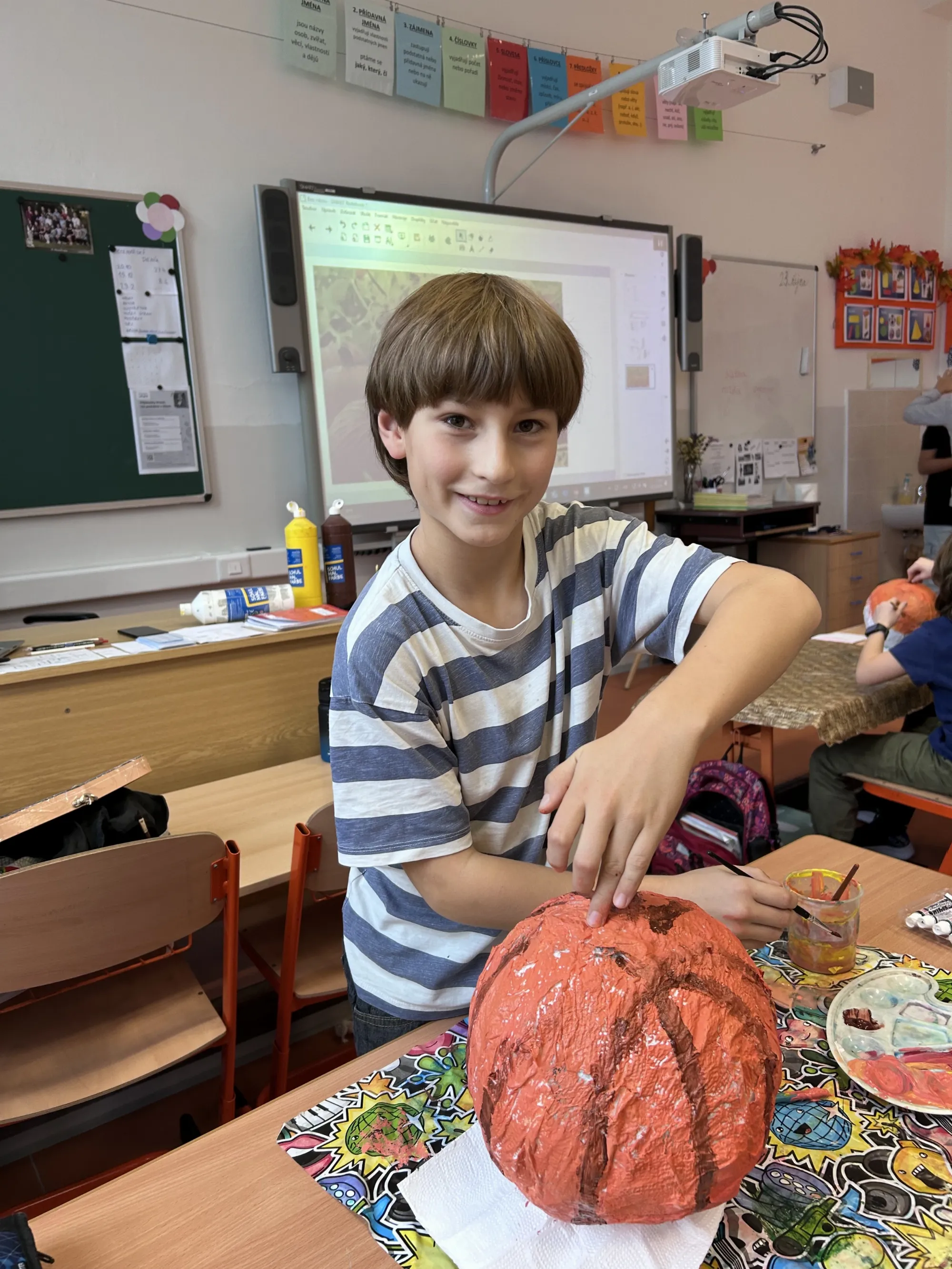 V říjnových hodinách pracovních činností 5.A vytvářela kašírované dýně, abychom měli vlastnoručně vytvořenou výzdobu třídy na Halloween.