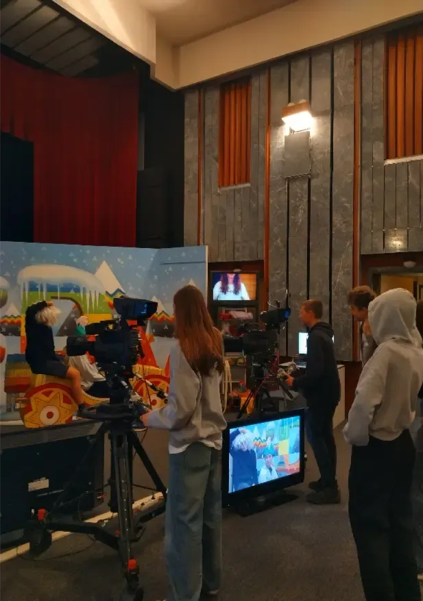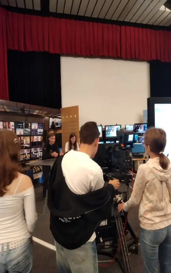 Měli jsme možnost nahlédnout do historie ČT, projít ateliéry, dozvědět se něco o historii ČT, průběhu natáčení, vidět na vlastní oči natáčení pořadu pro děti, a dokonce si vyzkoušet i moderování před kamerou.