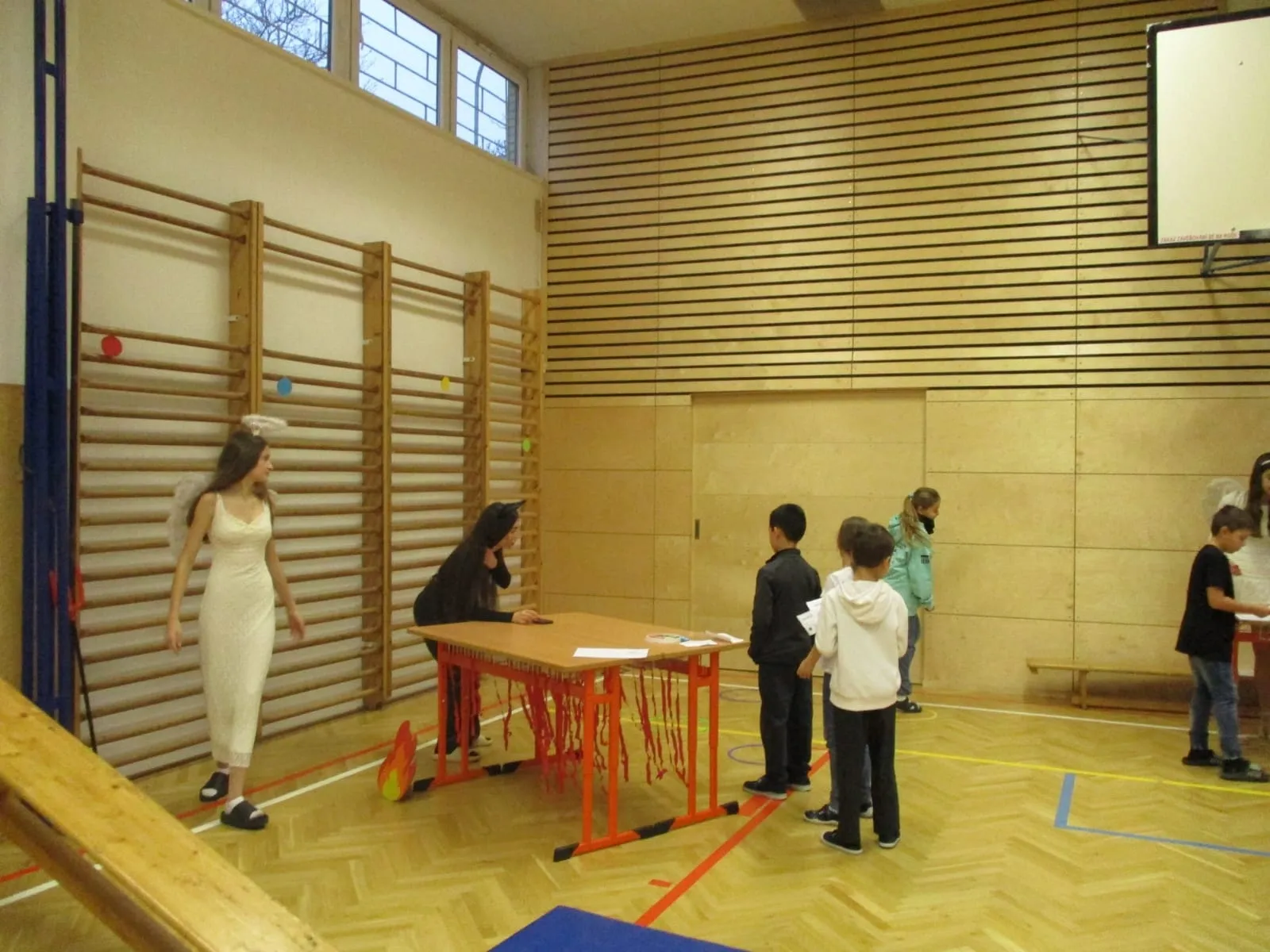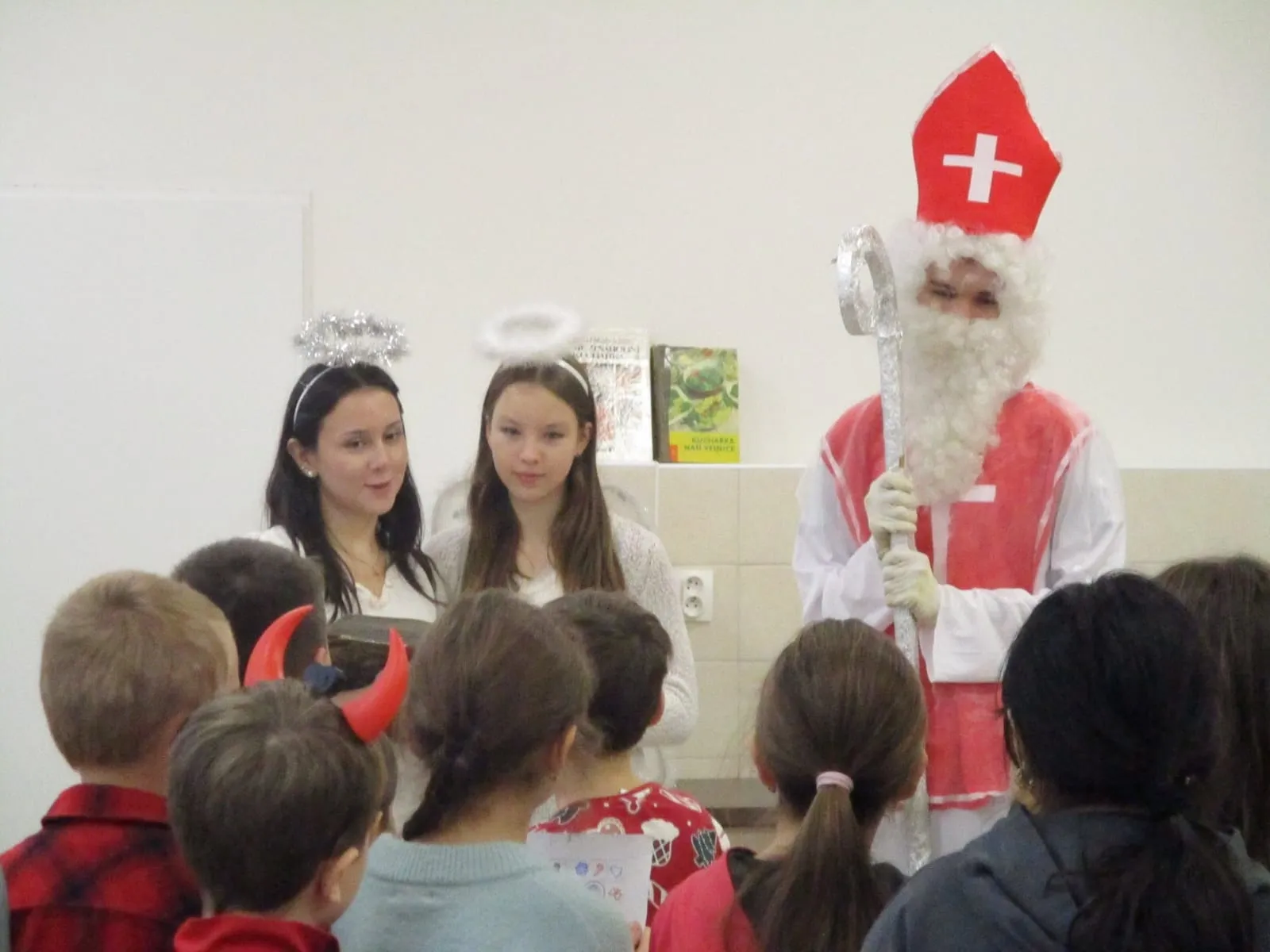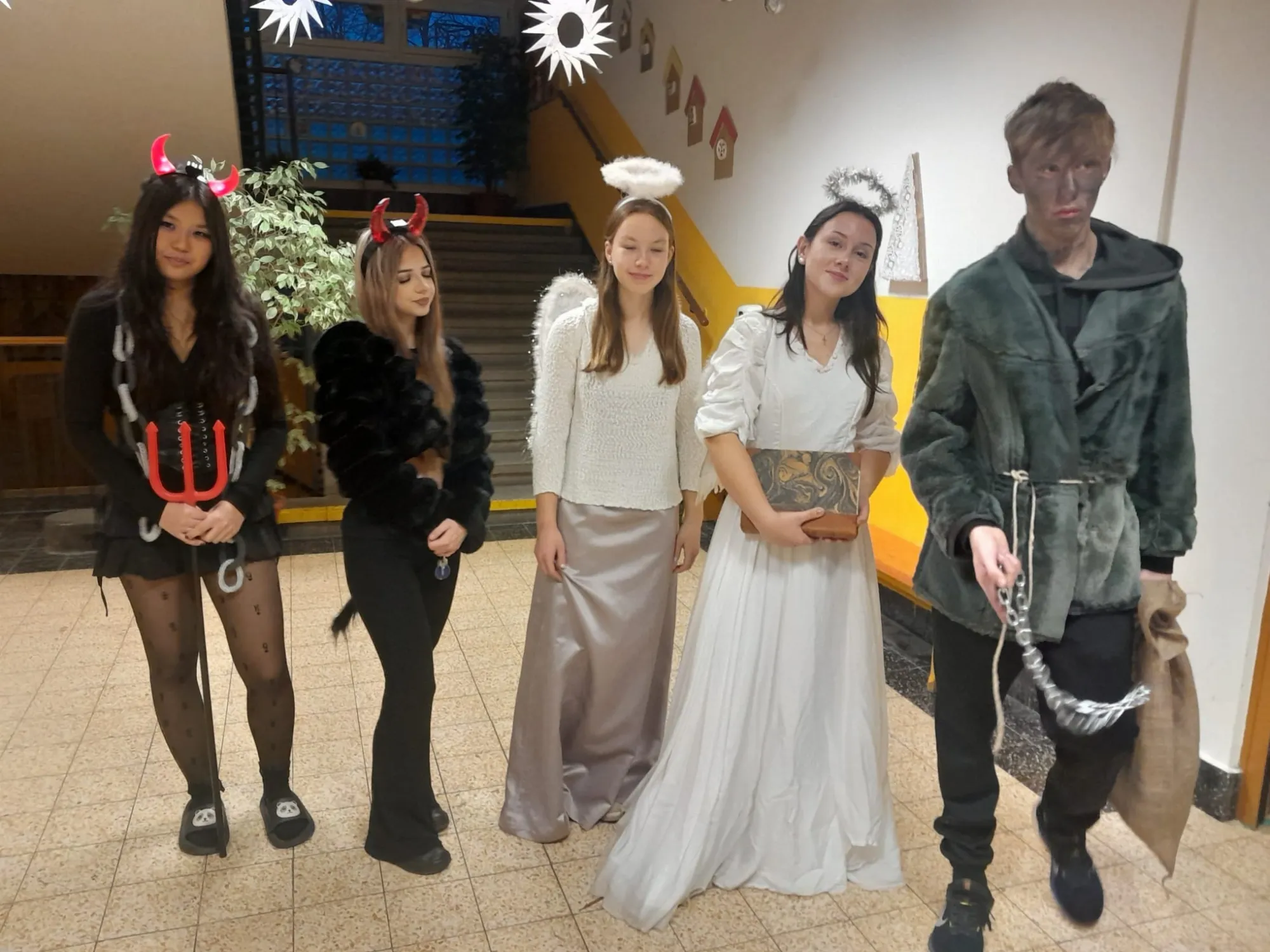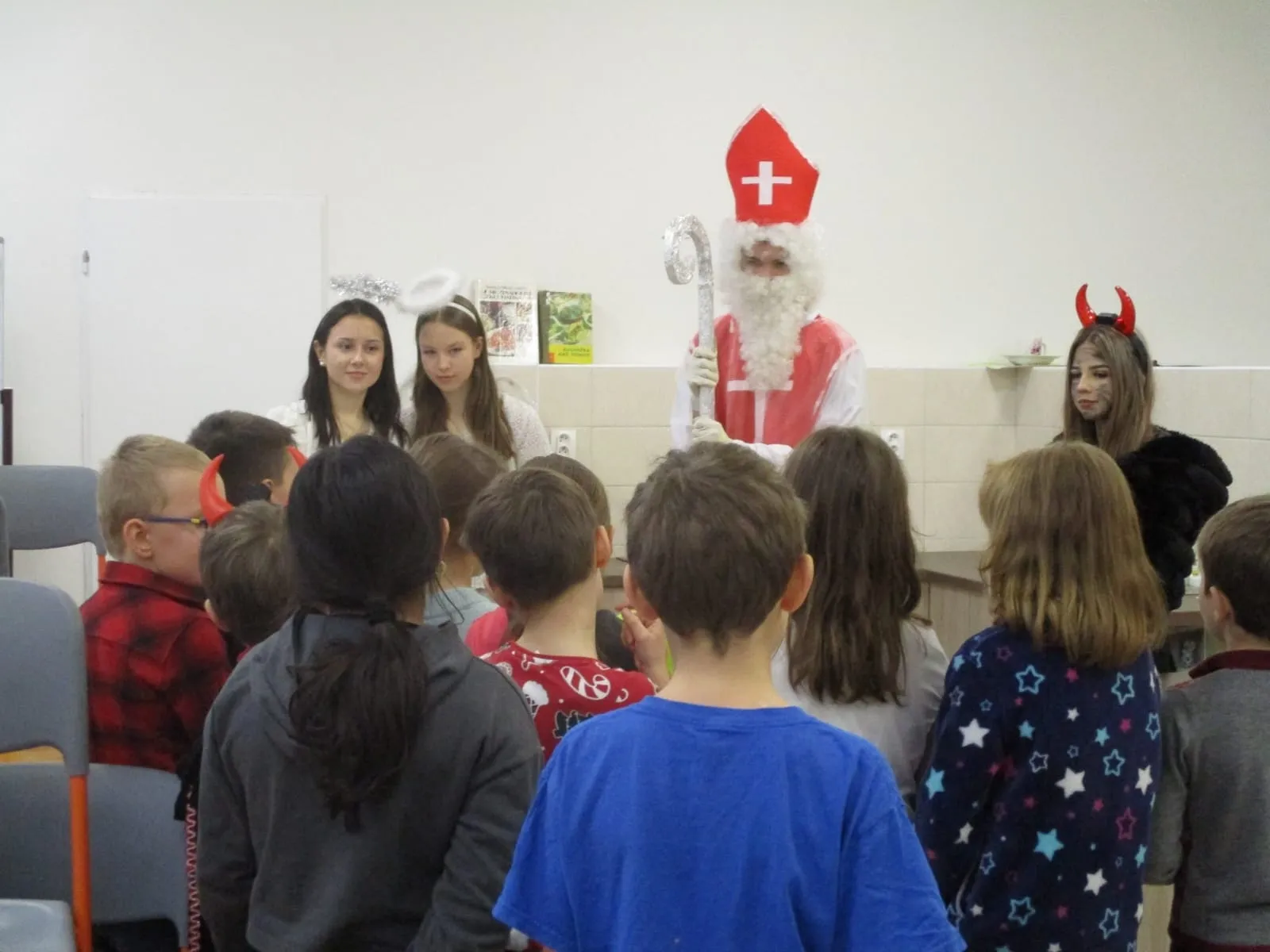 Následně se žáci přesunuli do „pekla“, kde je přivítali čerti. Atmosféra byla tajemná, ale děti si prohlédly pekelné dekorace a vyslechly si povídání od čertů. Poté se všichni přesunuli za Mikulášem a anděly, od kterých si odnesli zaslouženou sladkou nadílku.