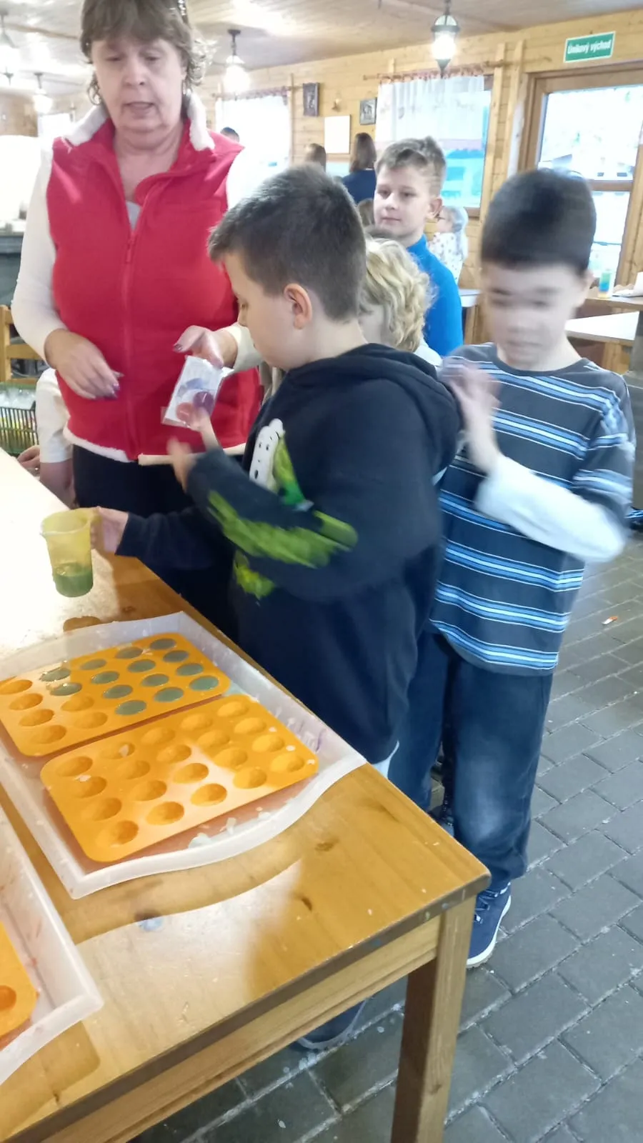 V pondělí 8. prosince jsme s dětmi navštívili výrobnu svíček v Šestajovicích. Děti si nabarvily vánoční svíčku, odlily plovoucí svíčku a do připravených lahviček vrstvily koupelnovou sůl. V prodejně si děti nakoupily různé vánoční svíčky a dárky pro maminky. Nakonec jsme si společně prošli minizoo s hospodářskými zvířaty za odborného výkladu paní vychovatelky Bečvářové.