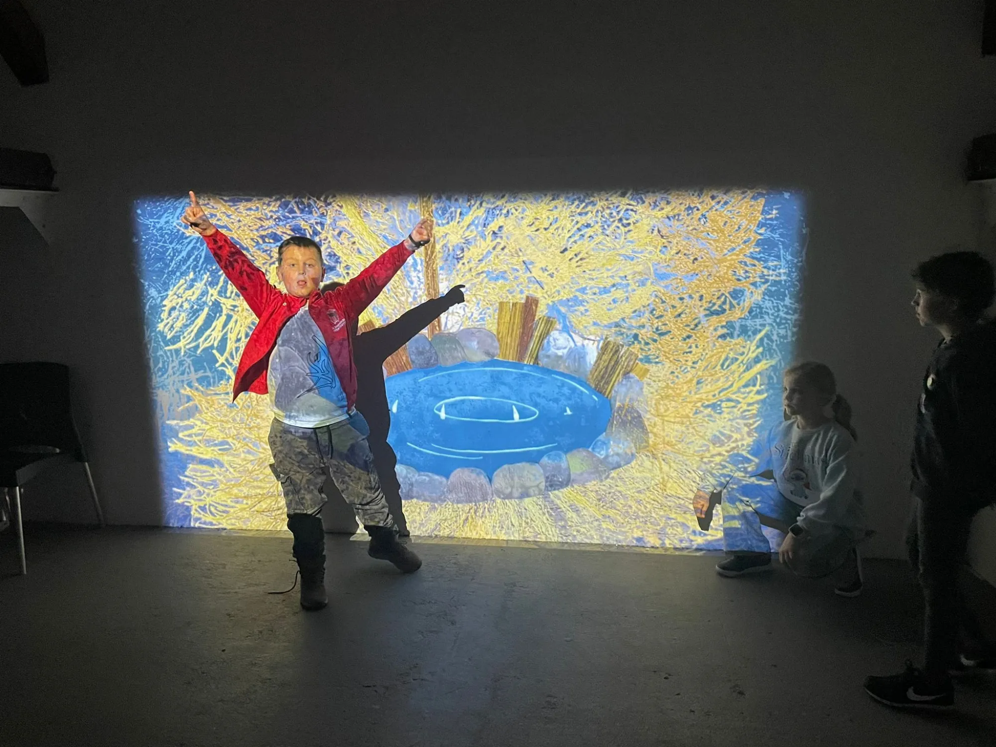 Největší úspěch v horním patře výstavy měl interaktivní kvíz a místnost, kde děti chytaly